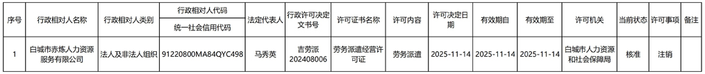 设立劳务派遣单位及其业务范围审批公示信息(2025年11月10日至11月14日办理)